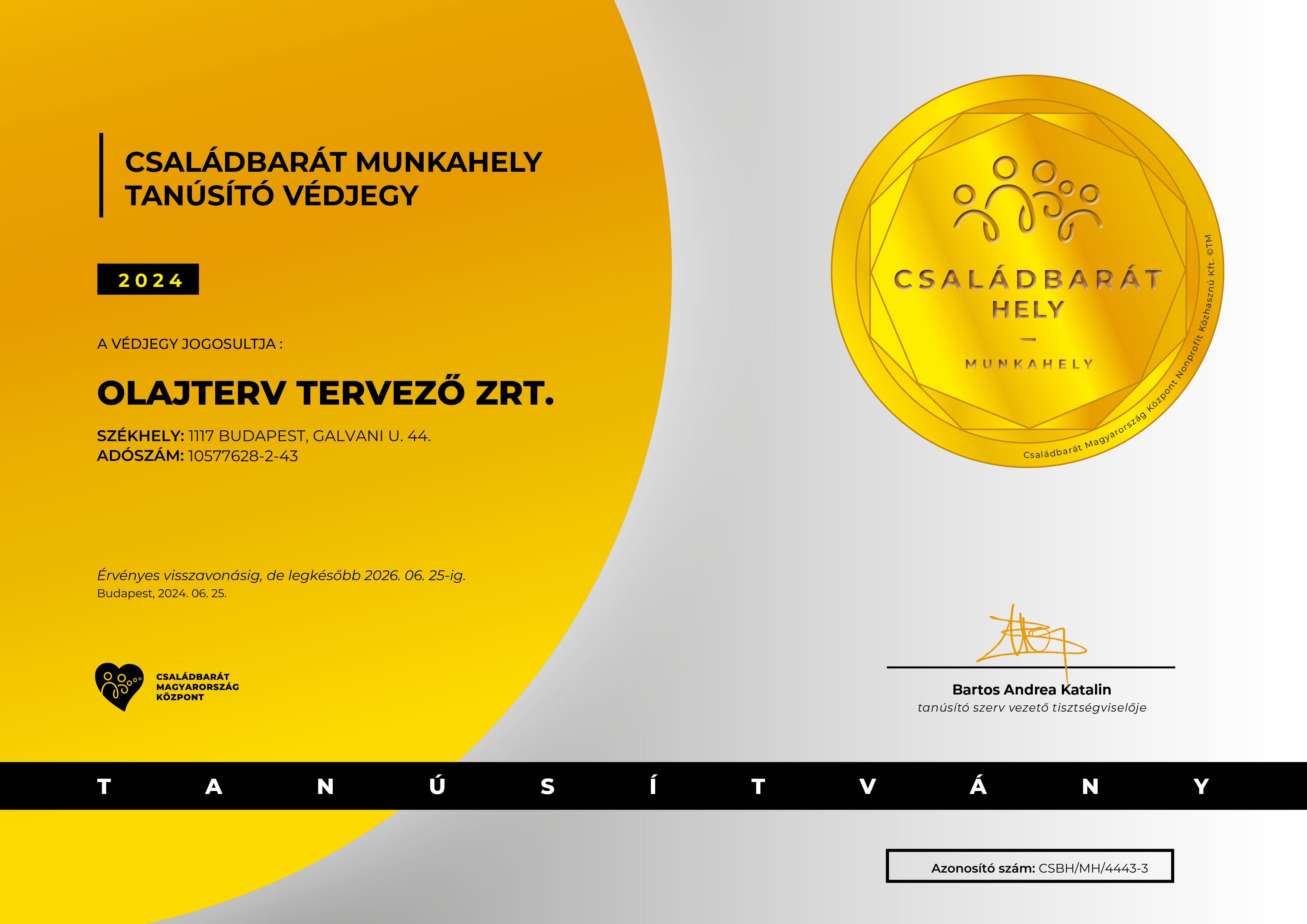 OLAJTERV has always operated on the basis of family-friendly values, and the newly awarded mark further confirms these efforts.